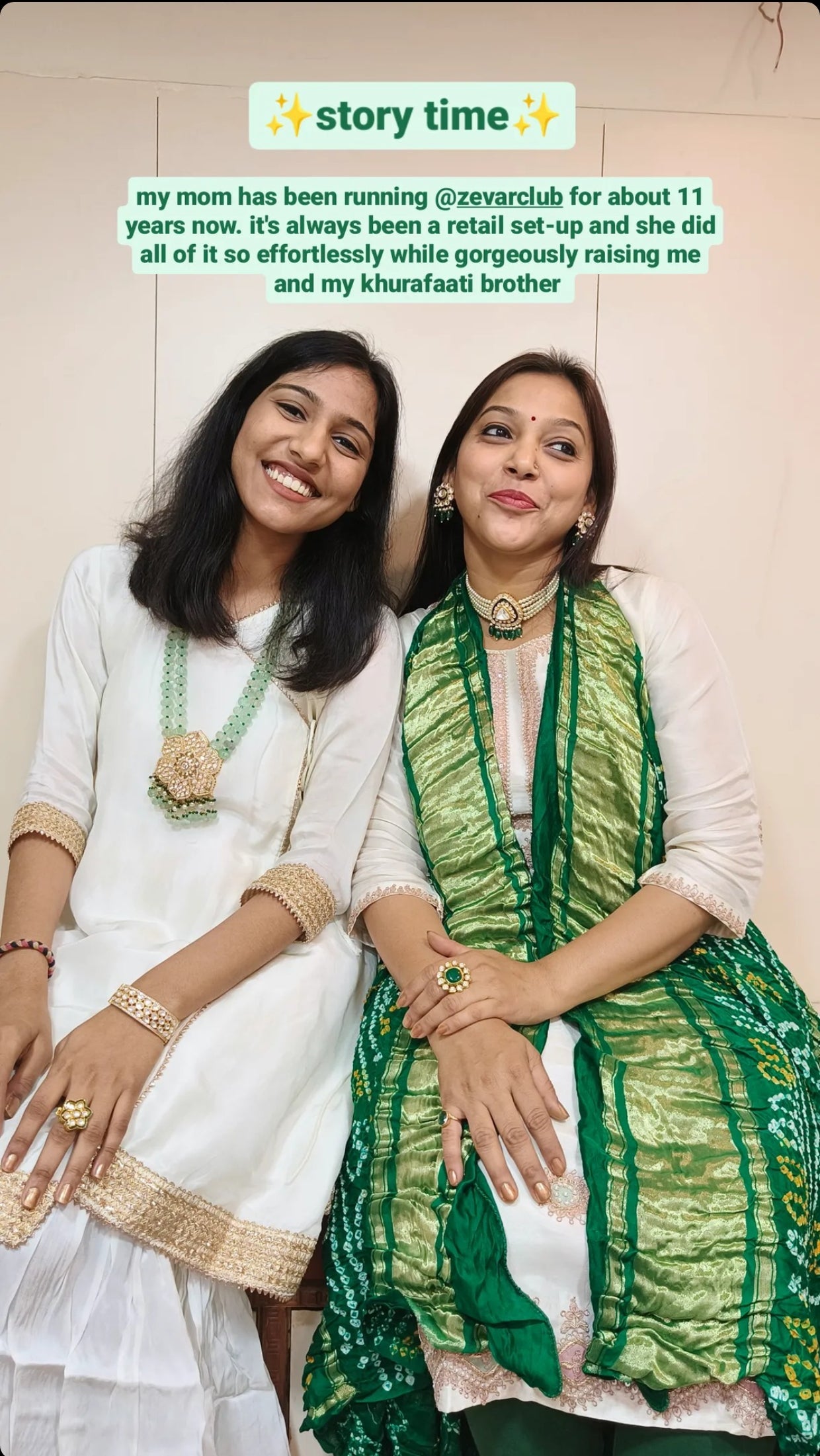 We are two best friends who also happen to be a mother-daughter duo. Zevar Club was founded by my mom, Kavita Dhoot. I've seen her scale the brand across the 11 years locally in Jamshedpur. To be honest, I have never had to purchase any accessory ever because she would always make sure I have everything that is trendy and timeless.